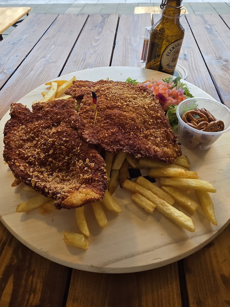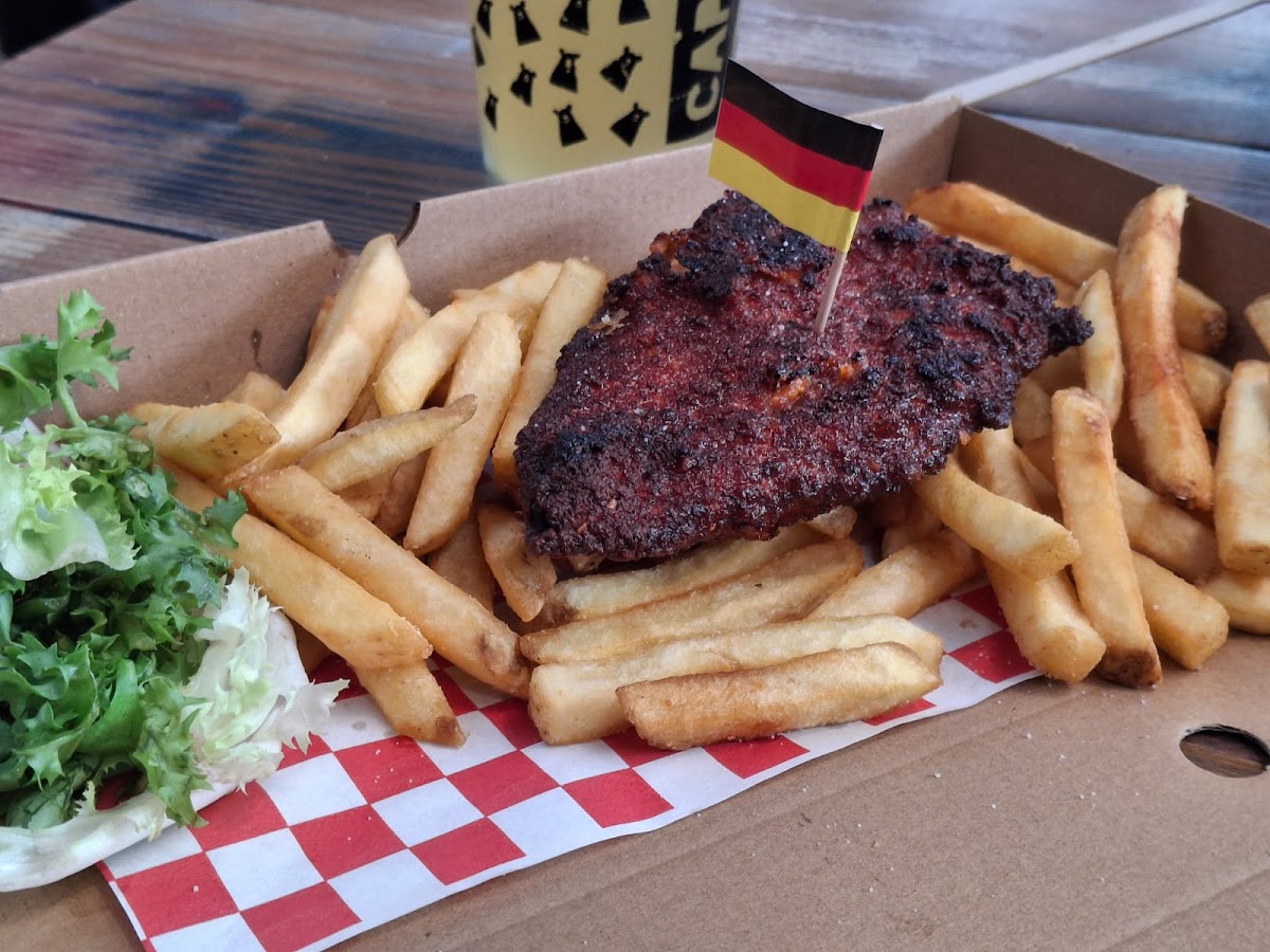 I visited the eatery in the historic market and was not disappointed. Ordered the Schnitzel and Fries and had some of the juiciest most succulent chicken I've ever had. Beautifully seasoned and the fries were top notch. If in the market we'll worth your time.