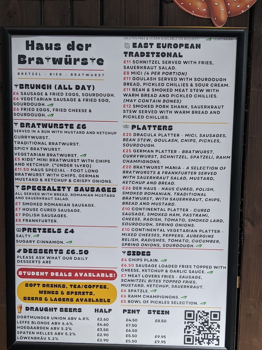 Welcome to Haus der Bratwurste, a gem nestled in the heart of Darlington at 4 W Row. This charming restaurant captures the essence of traditional German sausage cuisine, offering a delightful escape for those craving authentic flavors and a convivial atmosphere.