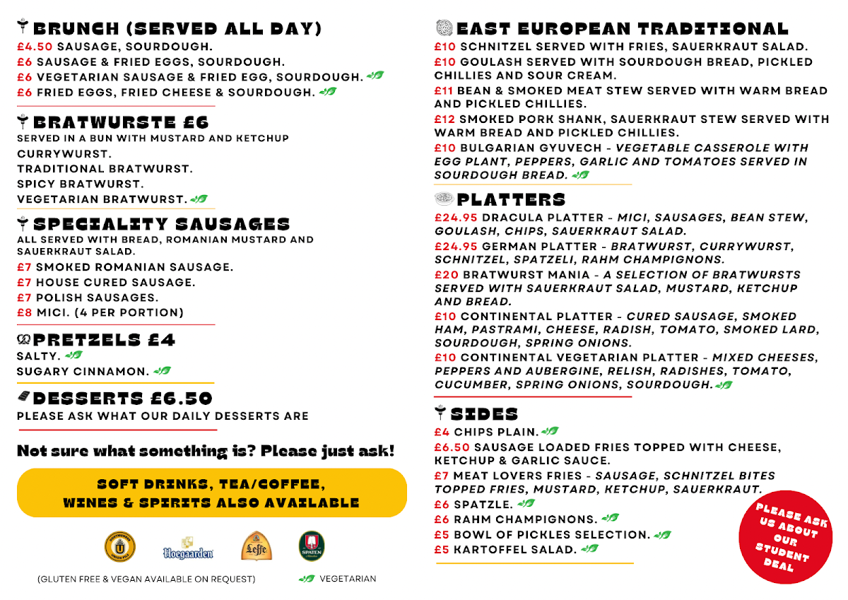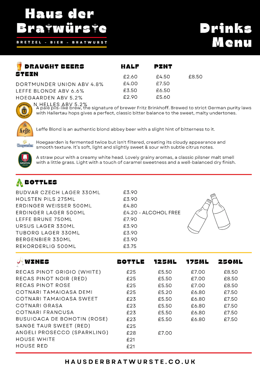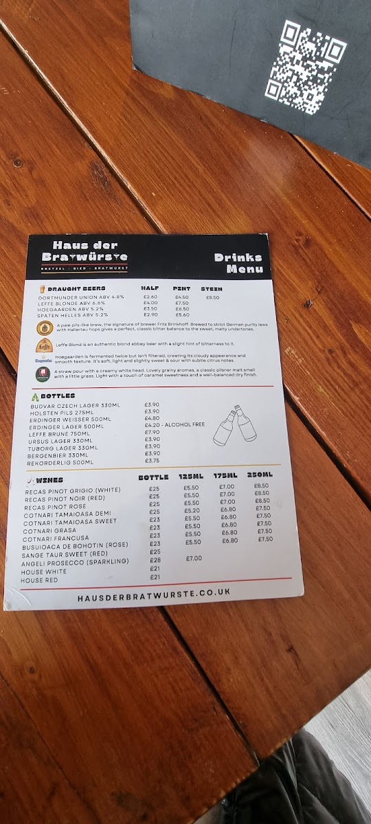 Welcome to Haus der Bratwurste, a delightful restaurant nestled in Darlington's historic market. This gem invites you to experience authentic German flavors, showcasing a mouthwatering array of bratwursts, schnitzels, and crispy fries. Customers rave about the delicious food, with many likening it to the beloved snack stands of Germany. Pair your meal with a carefully curated selection of traditional German beers, including Budvar and Erdinger, which enhance the communal dining experience.